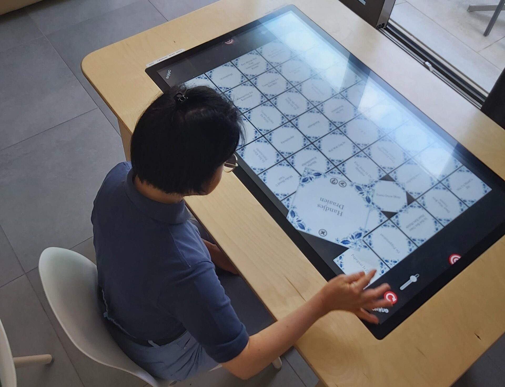 Door met je vinger of hand over het scherm te vegen, verschijnt er een onderliggende een foto. Het is een rustige, eenvoudige bezigheid die op een speelse manier beweging stimuleert.