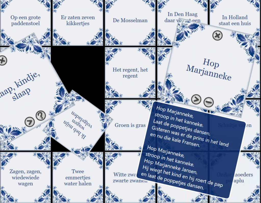 Met Liedjes van vroeger wordt de kindertijd weer even tastbaar. Op het scherm verschijnen 28 tegeltjes met de titels van vertrouwde kinderliedjes. Met één tik klinkt de muziek en verschijnt, als je wilt, de volledige tekst. Zo nodigt de app uit om mee te zingen, herinneringen te delen en samen te genieten van de vrolijke klanken van toen.